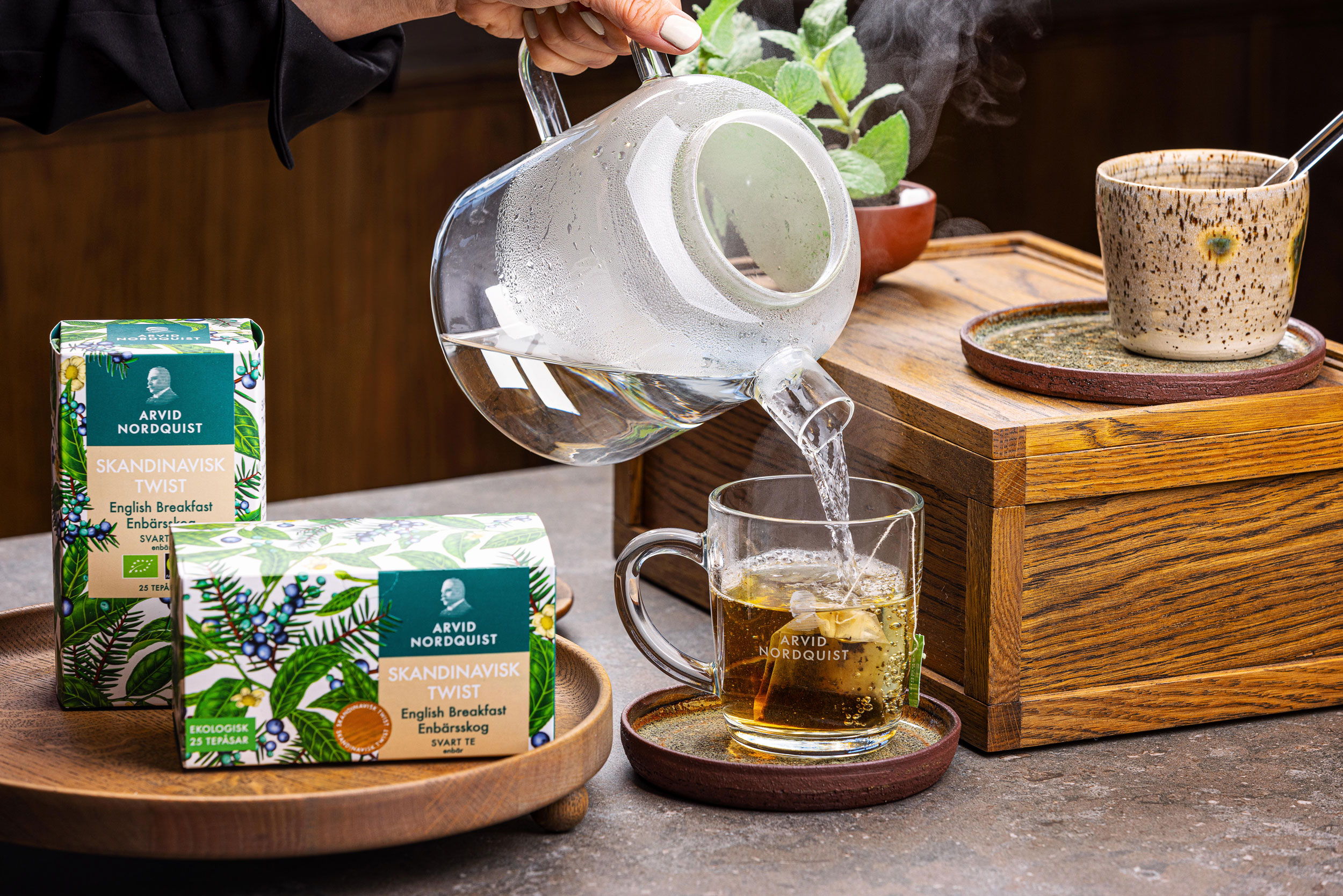En fyldig svart te med toner av einerbær